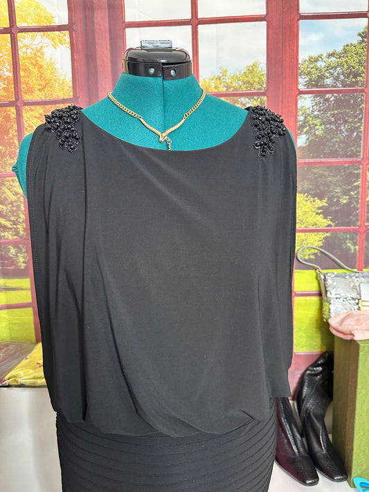 DENISE ELLE 100% silk shell Emerald Green and Gold Sequin dress sz L 20” pit