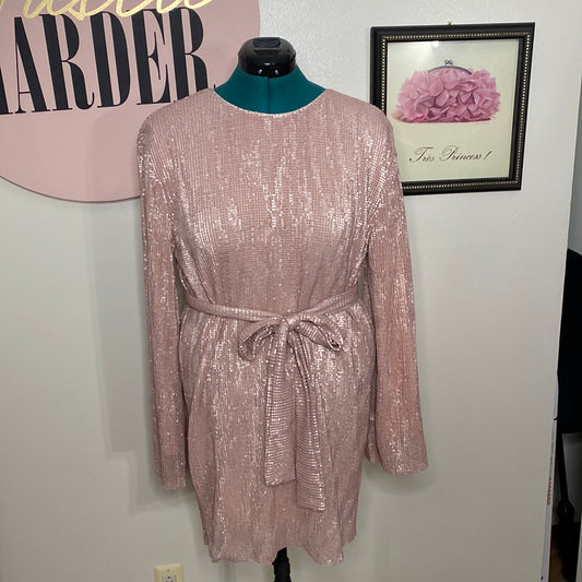 1108 Club L Pink Sequin Dress W/ Belt SZ 16