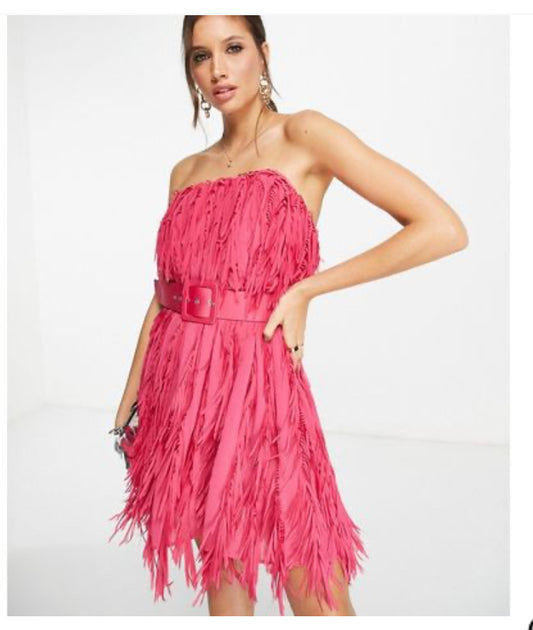 ASOS Fuschia Fringe Dress w/ belts sz XL