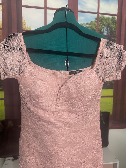 Preloved Shein Pink Rose petal strapless mini dress sz L 8/10