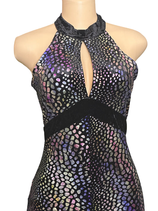 Patra Black Ruffle Eveniing Dress w/ rhinestone accent sz 14