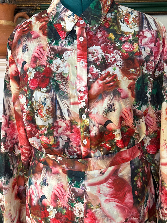 NWT Pretty Little Thing Plus 2pc Rose Femme Renaissance print pants suit sz 14