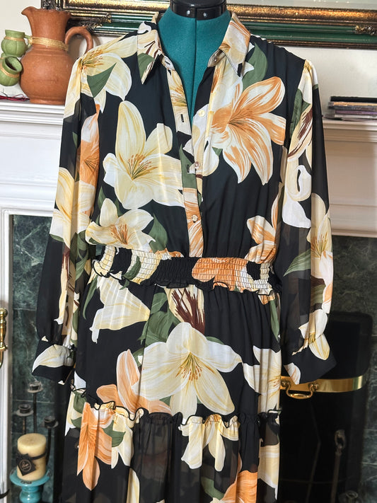 Antonio Melani Rosalia Puff Sleeve Midi Swing Dress sz L