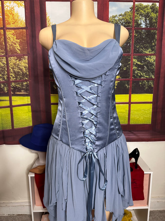 NWT FashionNova Slate Blue Chiffon Mini Dress Sz L