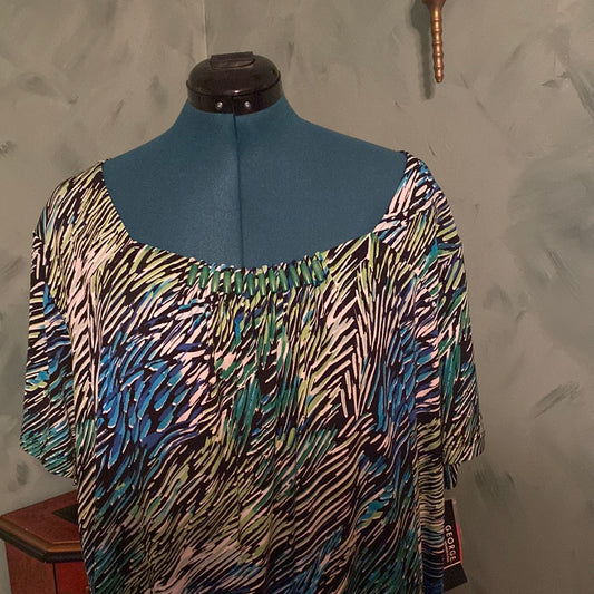 S718 GREEN PRINT BLOUSE W/ WOOD EMBELLISHMENTS NWT SZ 4X