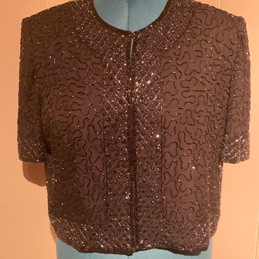 BRILLANTE 100% SILK BLACK SEQUIN EVENING JACKET SZ XL