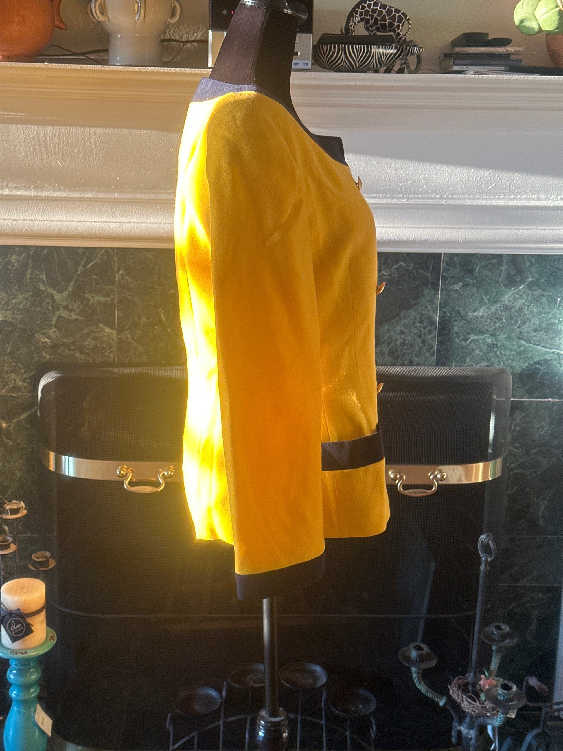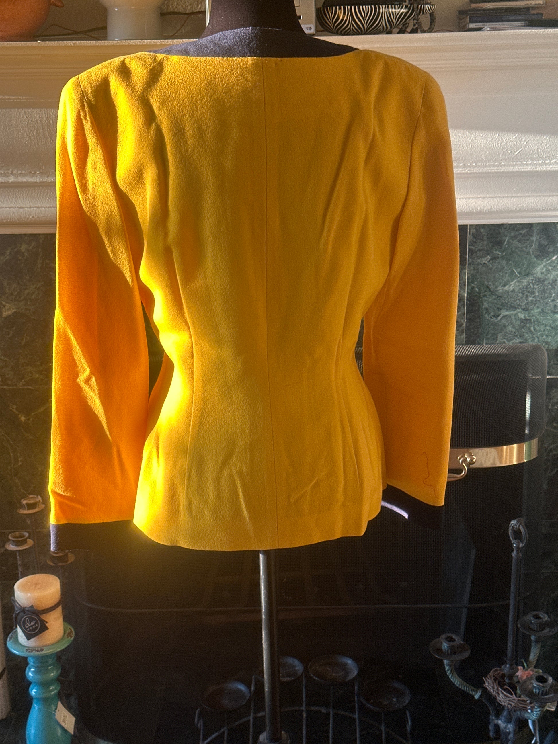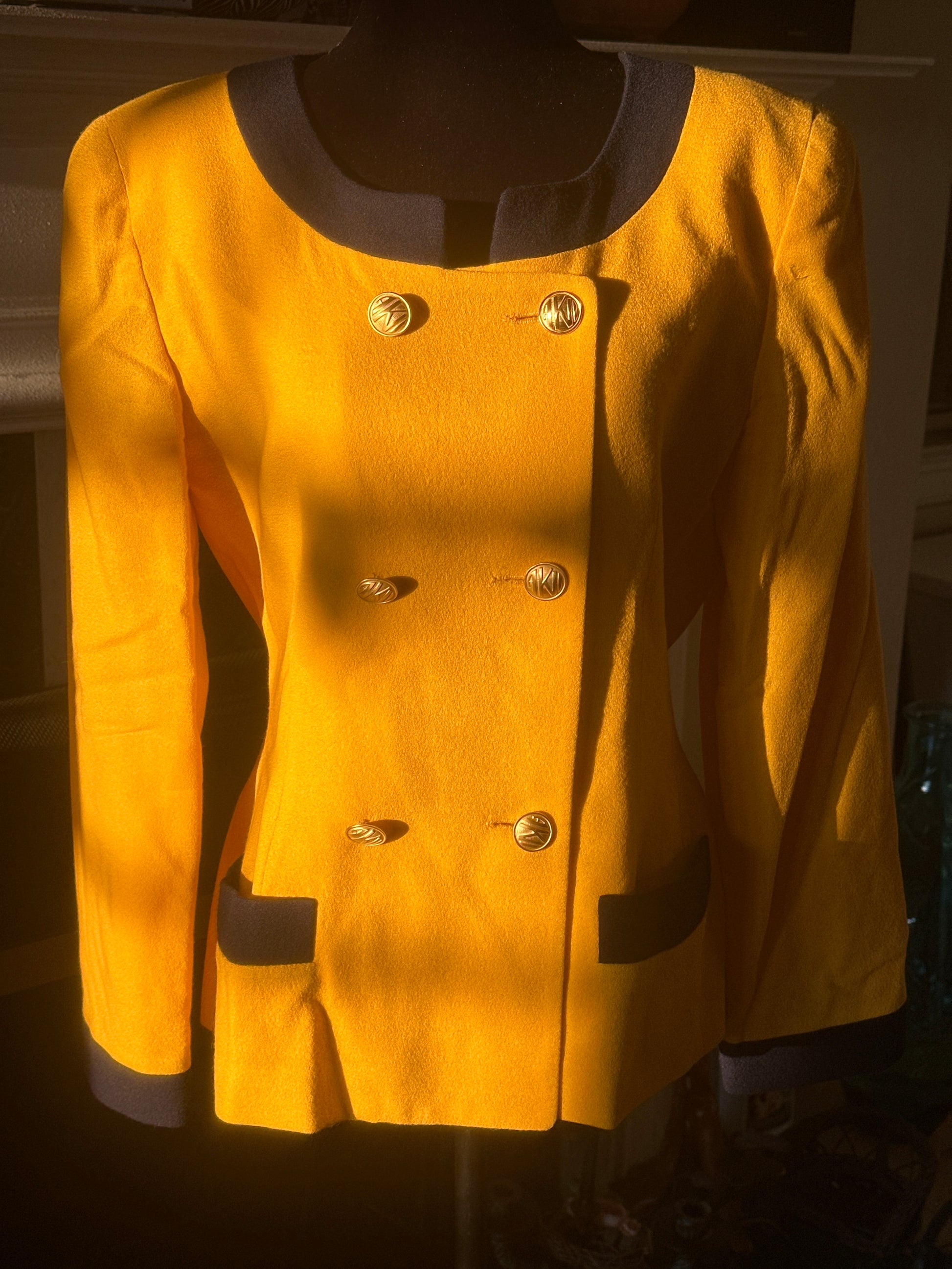 Anne Klein Yellow Blazer with Blue Trim Sz M pit to pit 18”