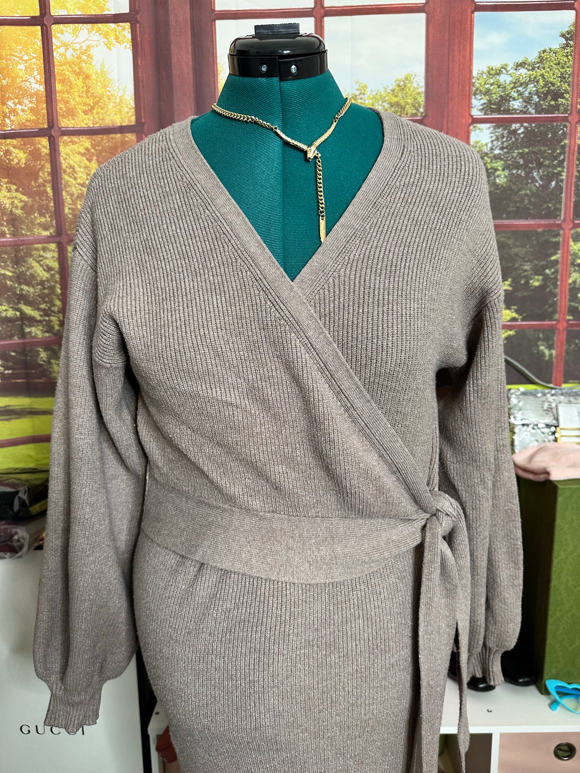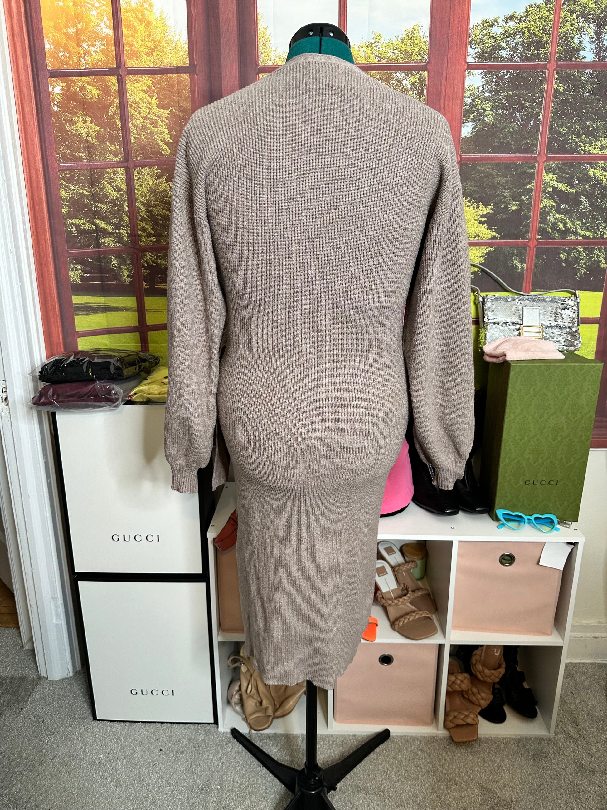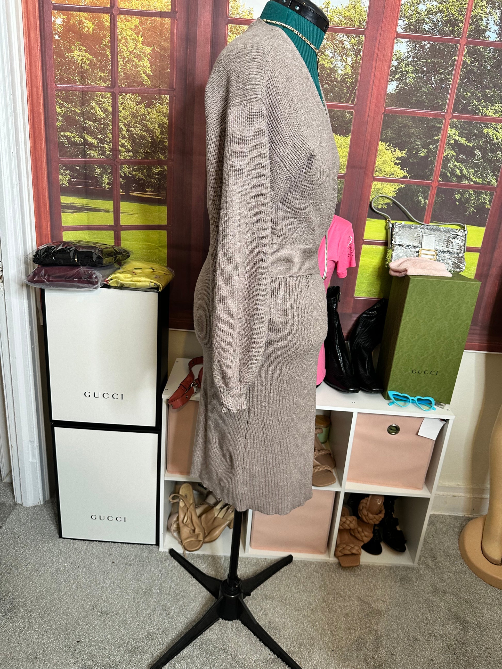Charles Henry Taupe Sweater Dress with Balloon sleeves sz L