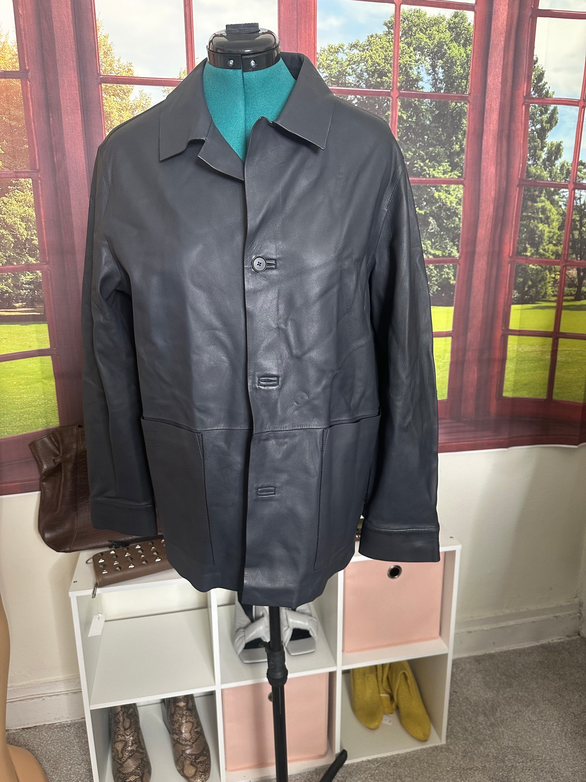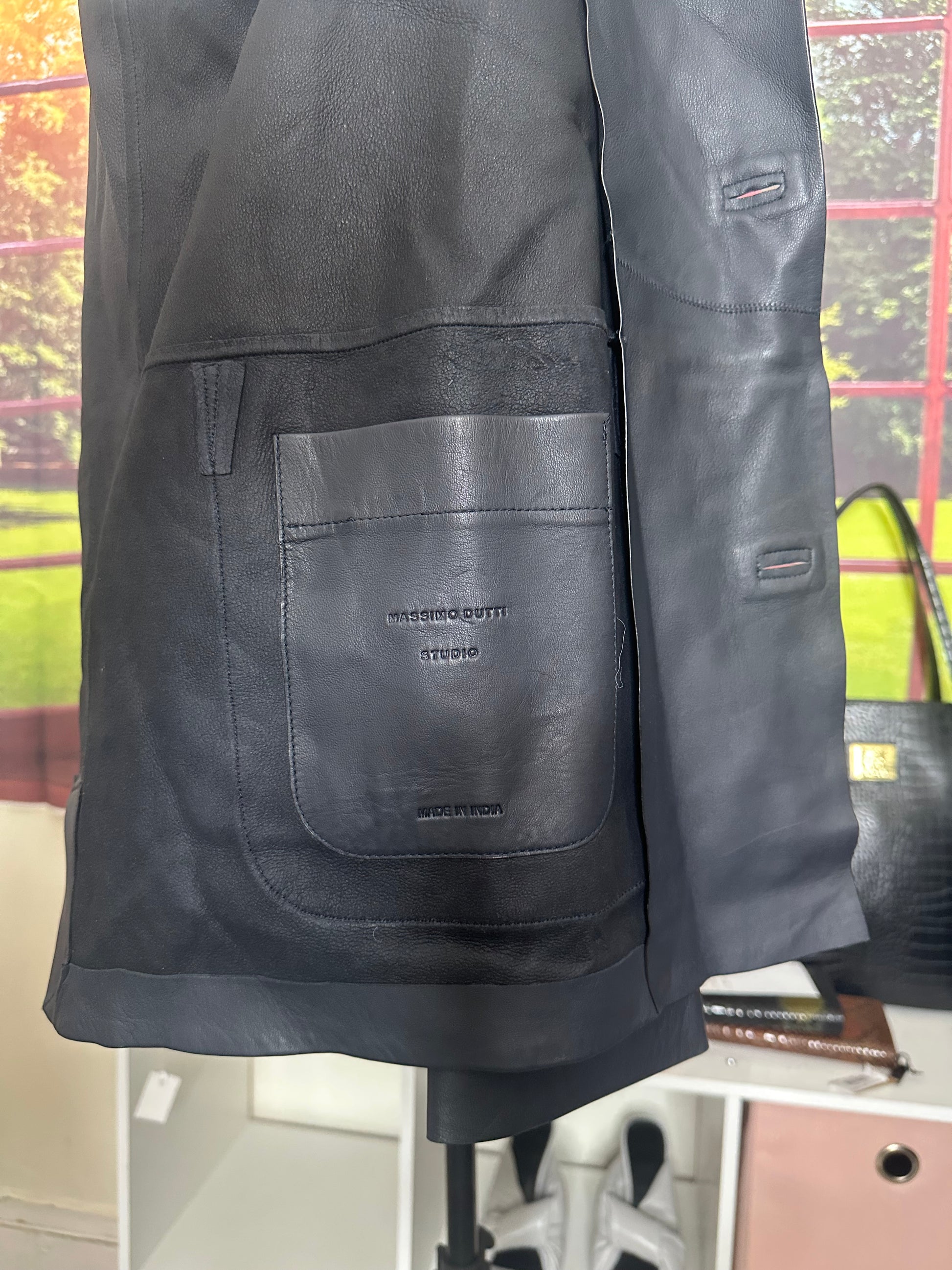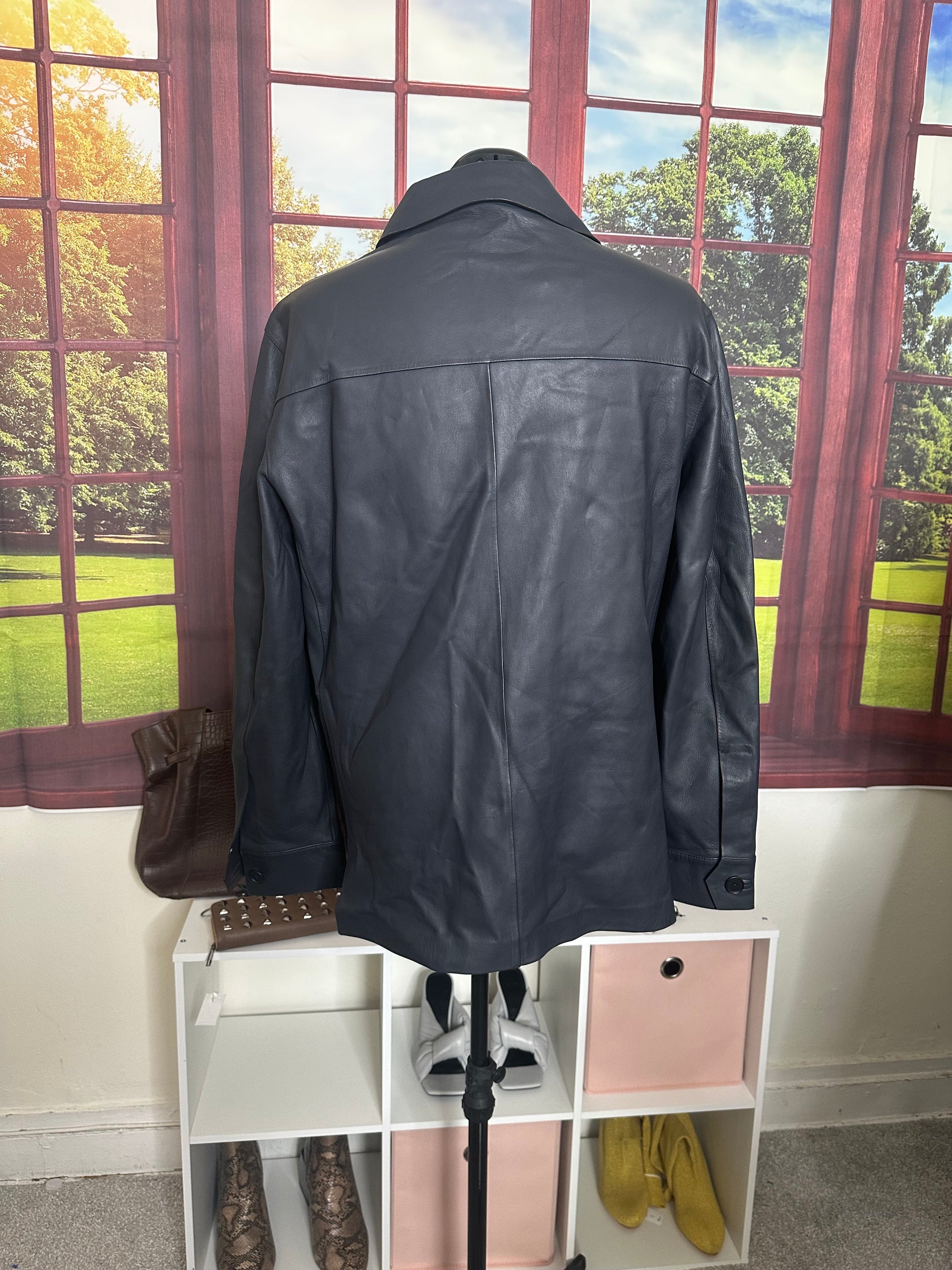 NWOT Sample Massimo Dutti Navy Leather Jacket sz L
