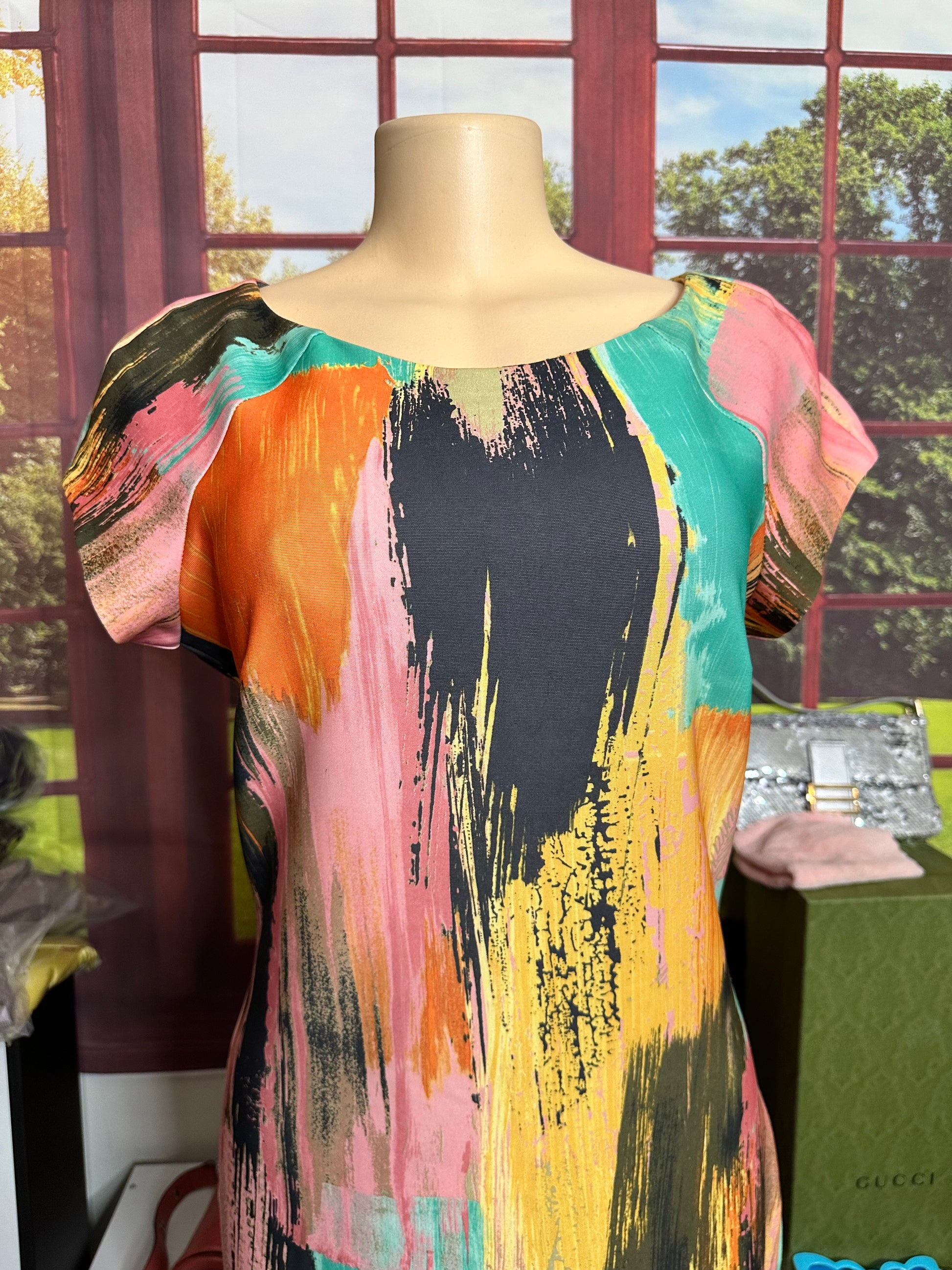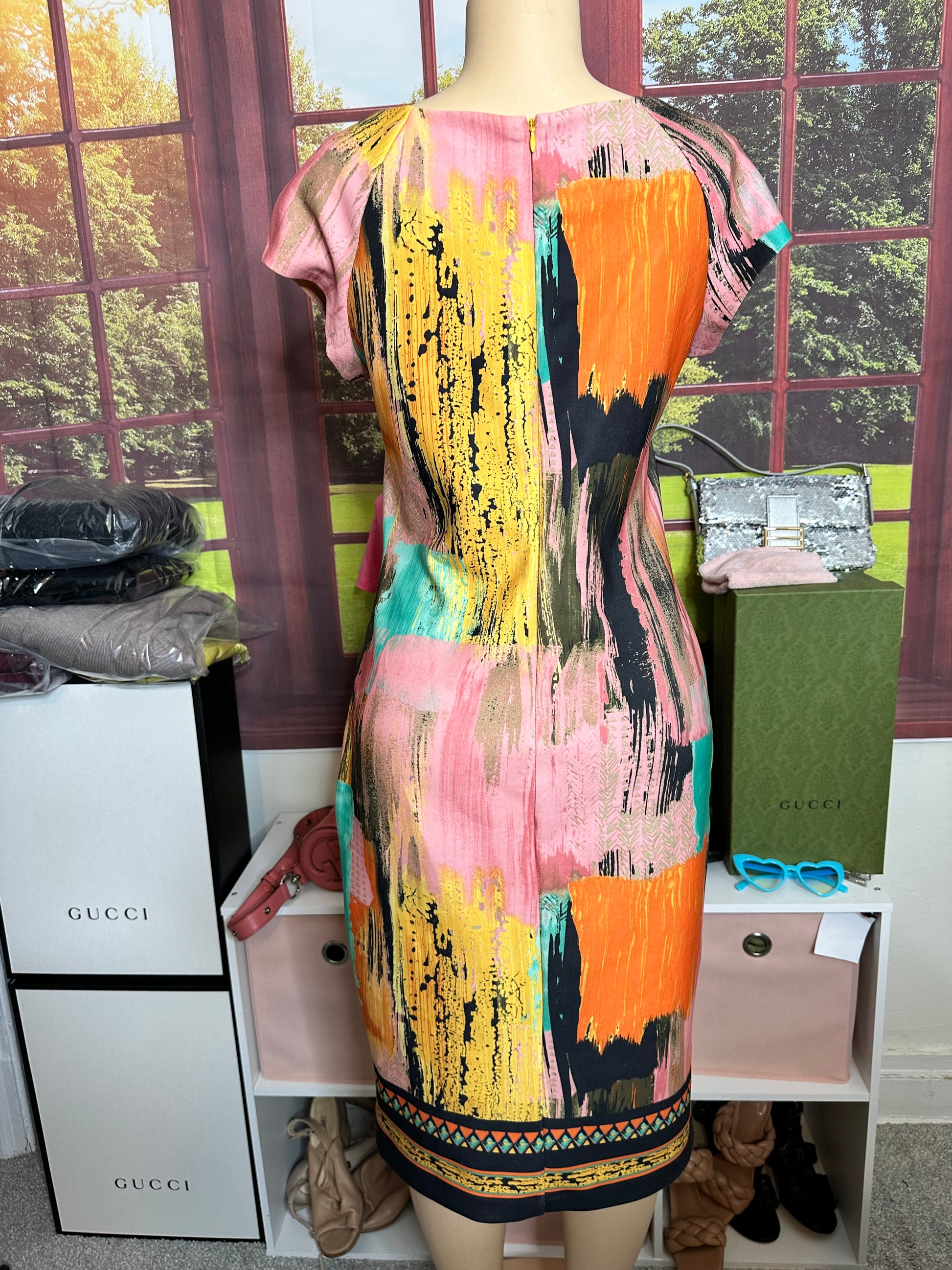 Preloved Beige by ECI Multicolor Scuba Sheath Dress Sz 10