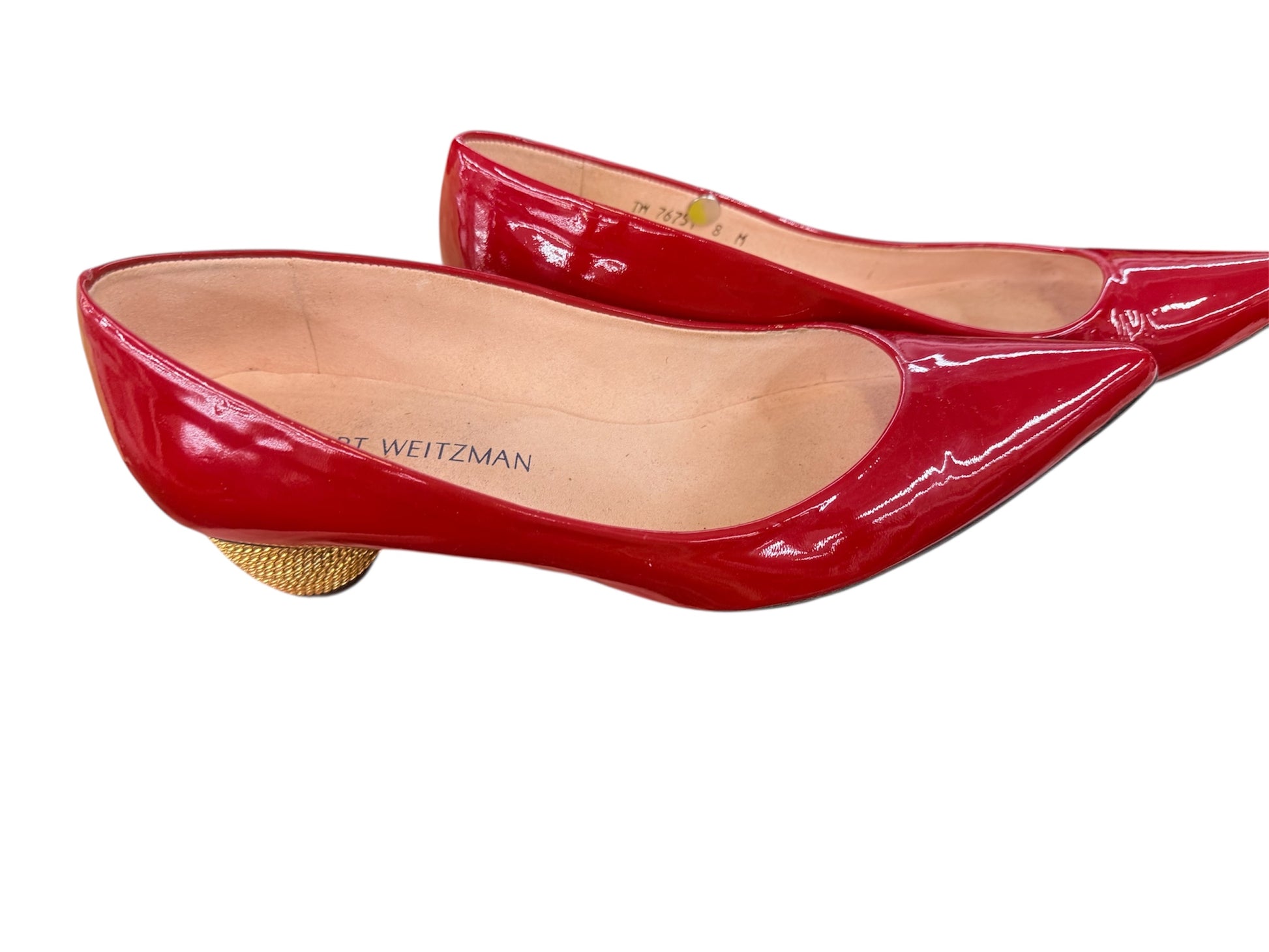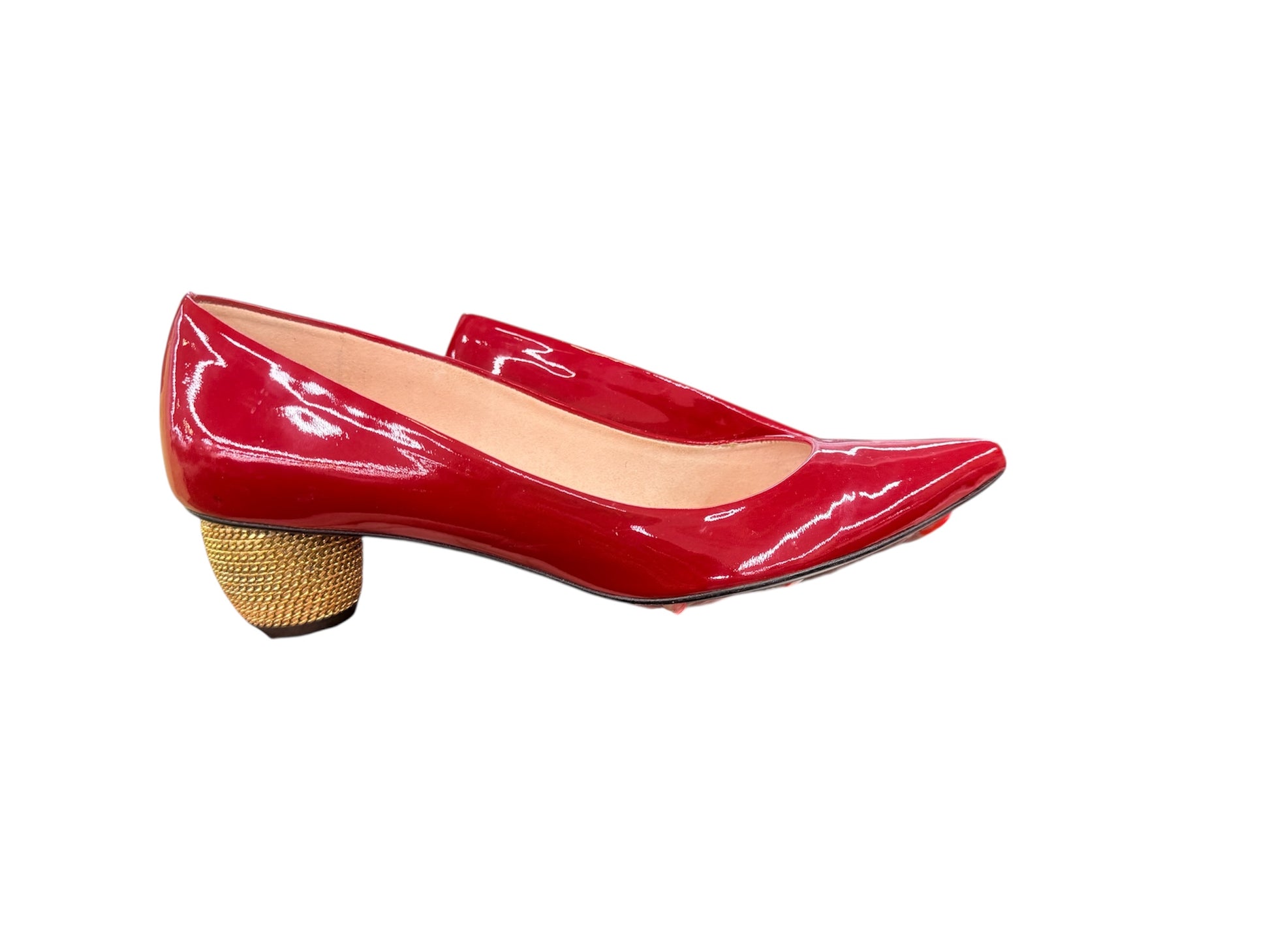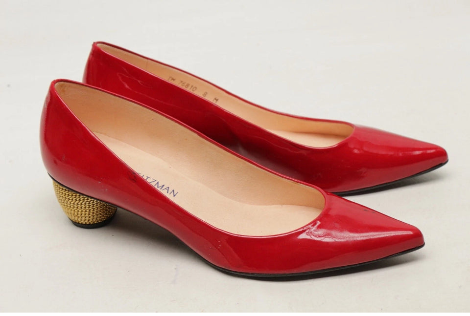 Stuart Weitzman Red Patent Pump With Gold Chain Heel sz 8