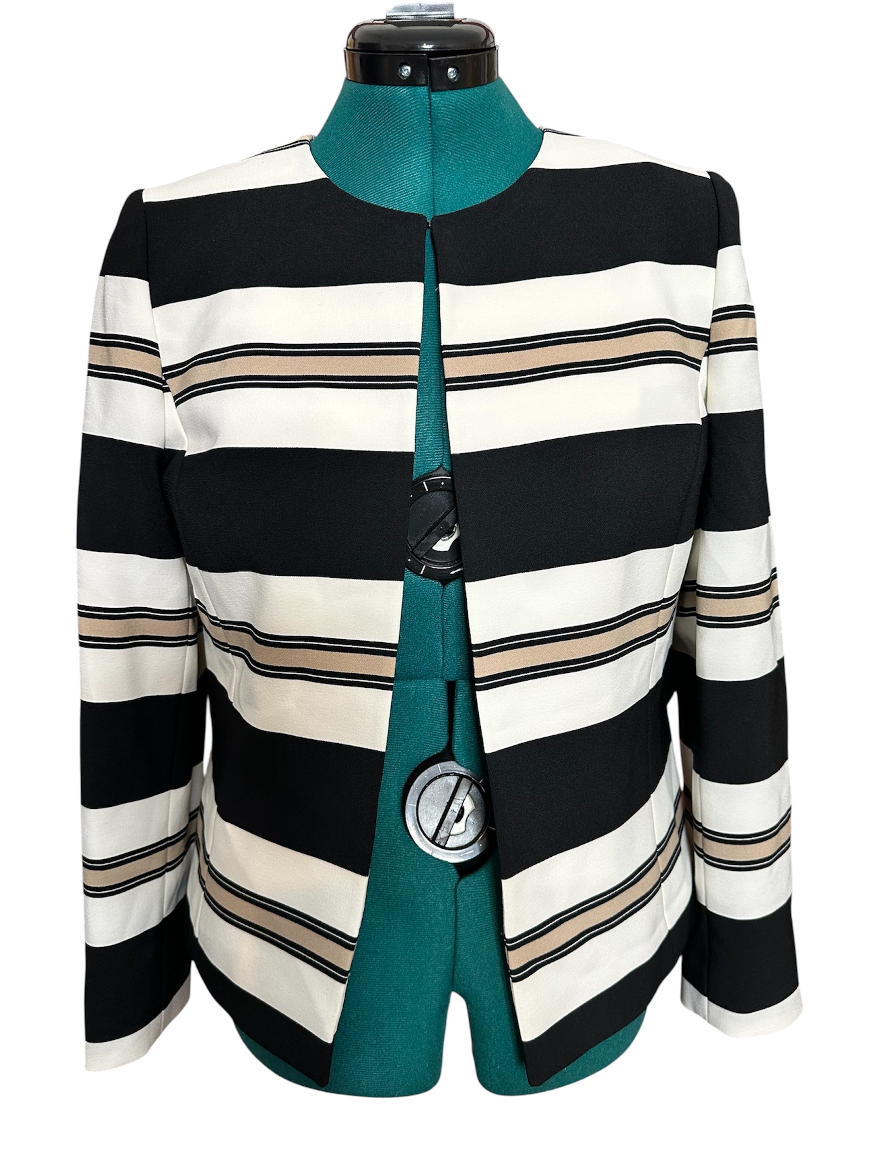 Tahari Black/White/Gold Stripe Blazer Sz 8